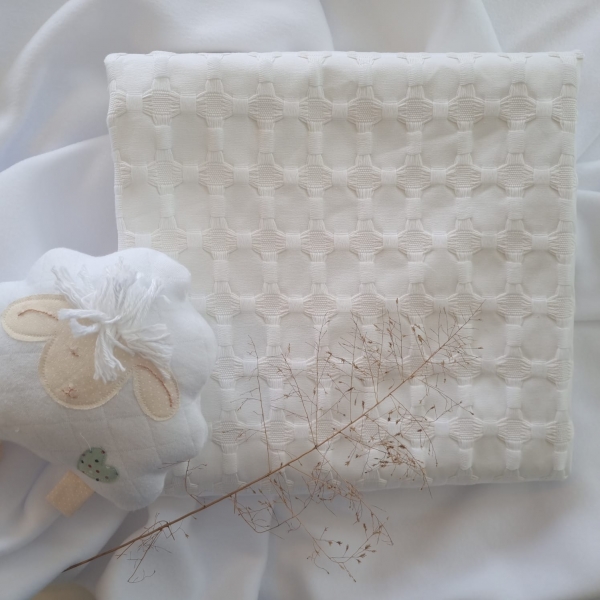 Confeccionada com um jacquard 100% algodão, ela é leve e dá um toque especial à cama dos bebês.